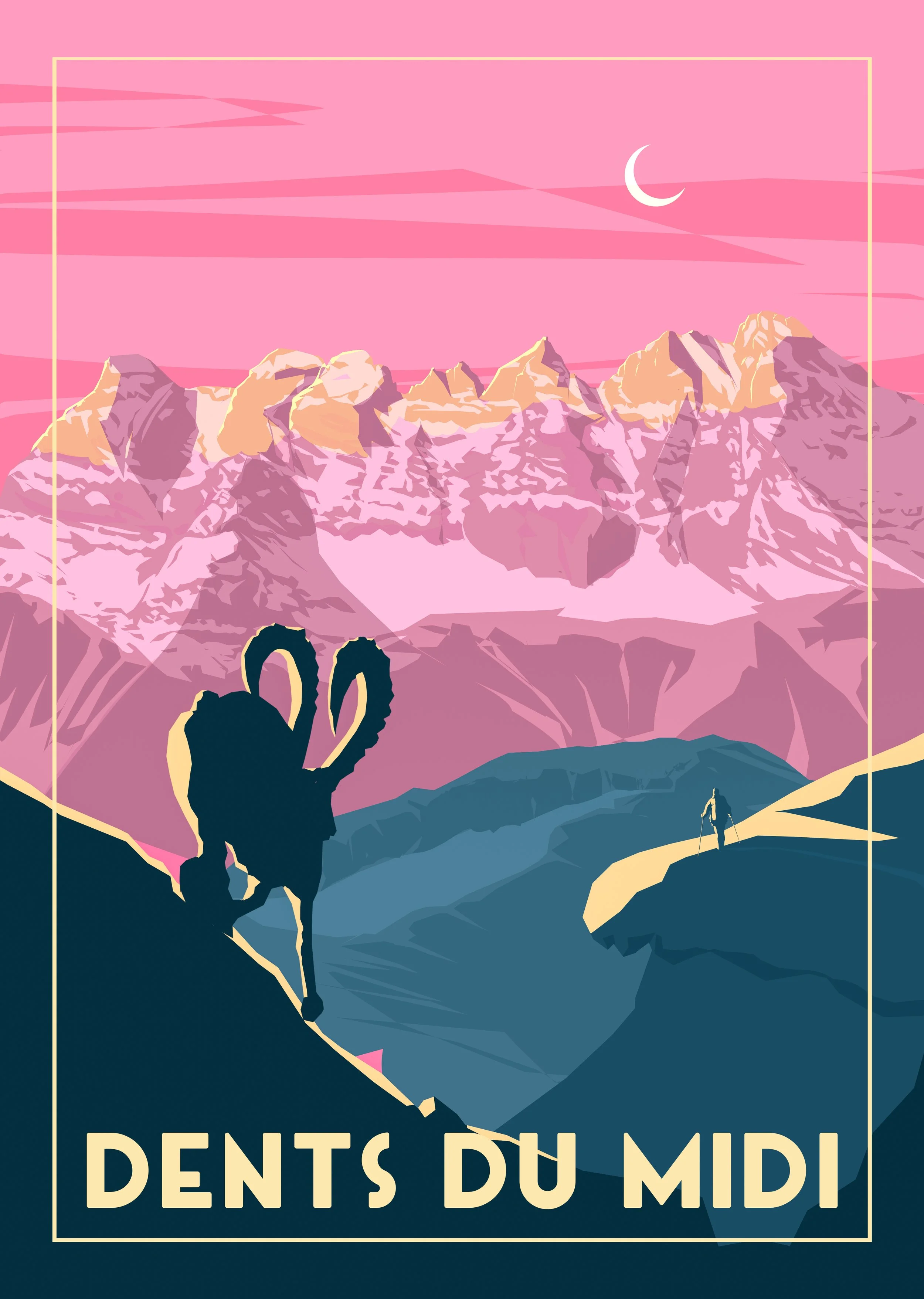 Des illustrations digitales de paysages dans un style moderne inspiré des affichistes anciens